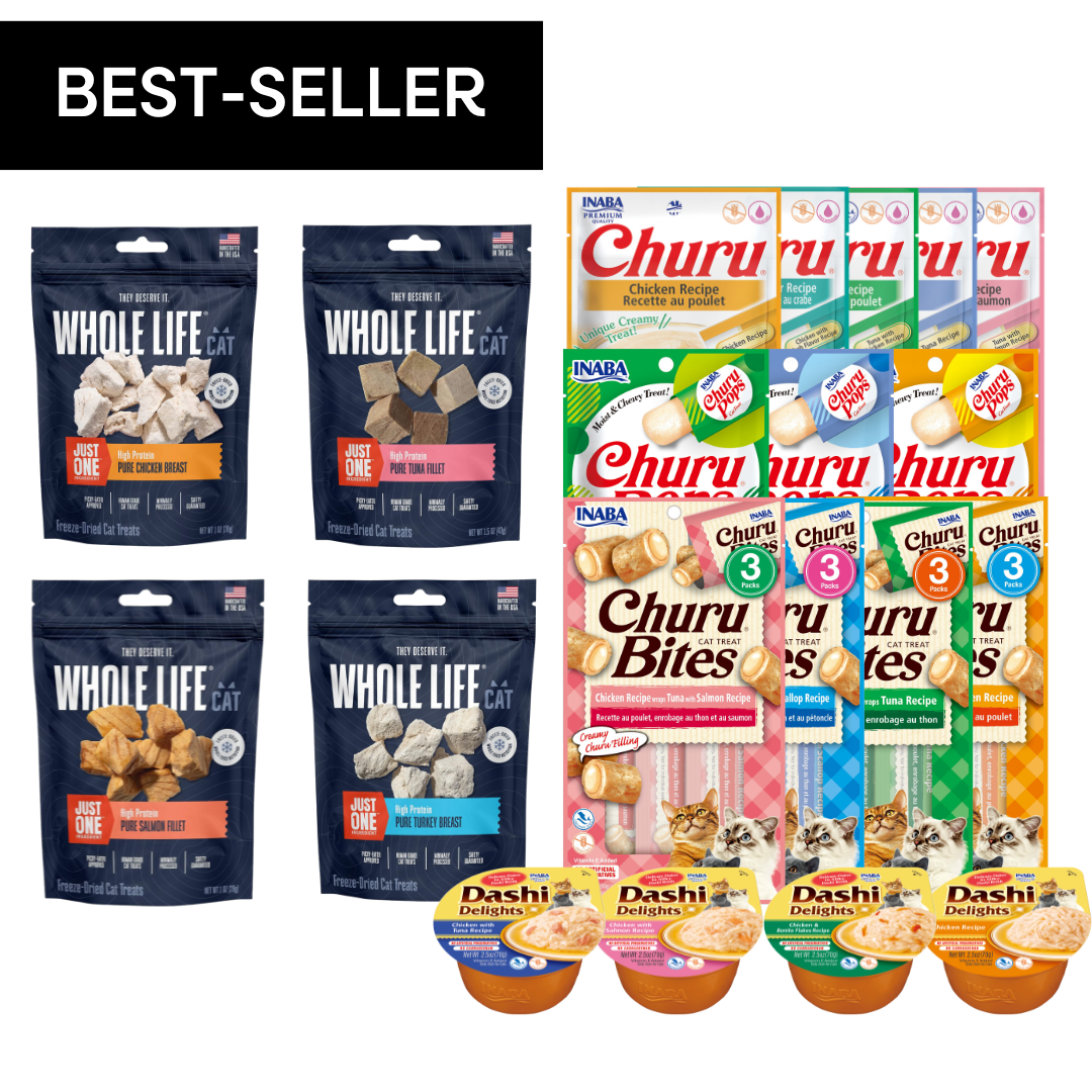 There are some basic rules to giving cats treats. 90% of your cat’s diet should be protein, so stick with protein treats. You might have to try several different kinds of treats before finding one your cat really loves. Freeze dried protein treats are a favorite. You should not be free-feeding your cat (refer to our nutrition post), if your cat isn’t hungry, working with treats will not be effective. When you give a cat treats, it’s an opportunity to teach them something and/or reward their behavior. This should be a thoughtful process verse dispensing treats because your cat it’s just so cute. Jackson expands on working with treats and the various kinds of treats below, take a look.