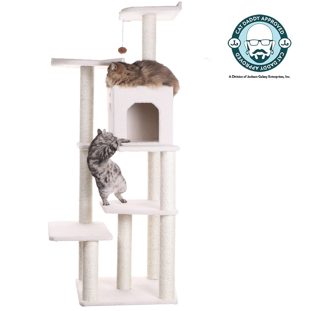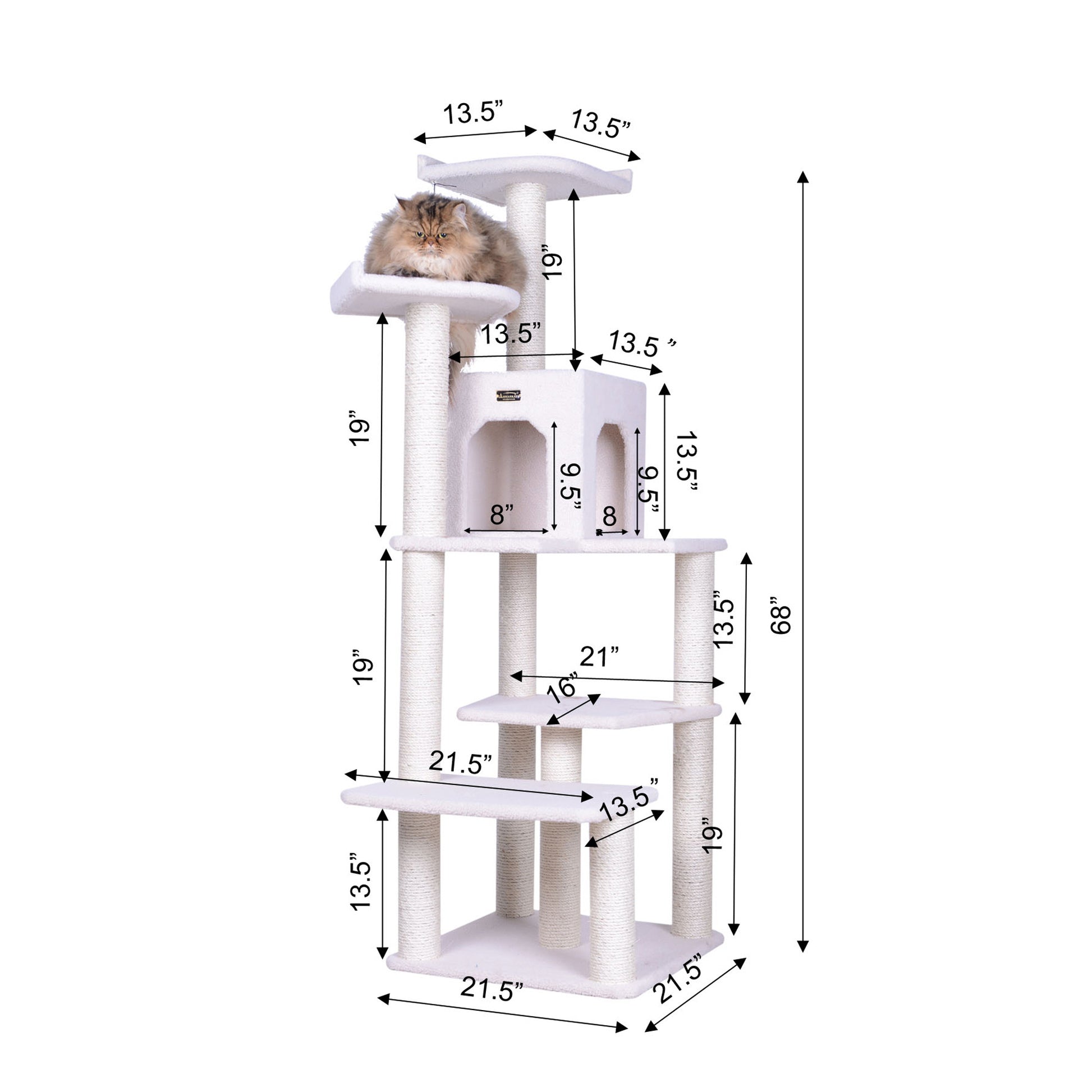 68-inch Faux Fleece Cat Tree, Ivory with House by Armarkat
