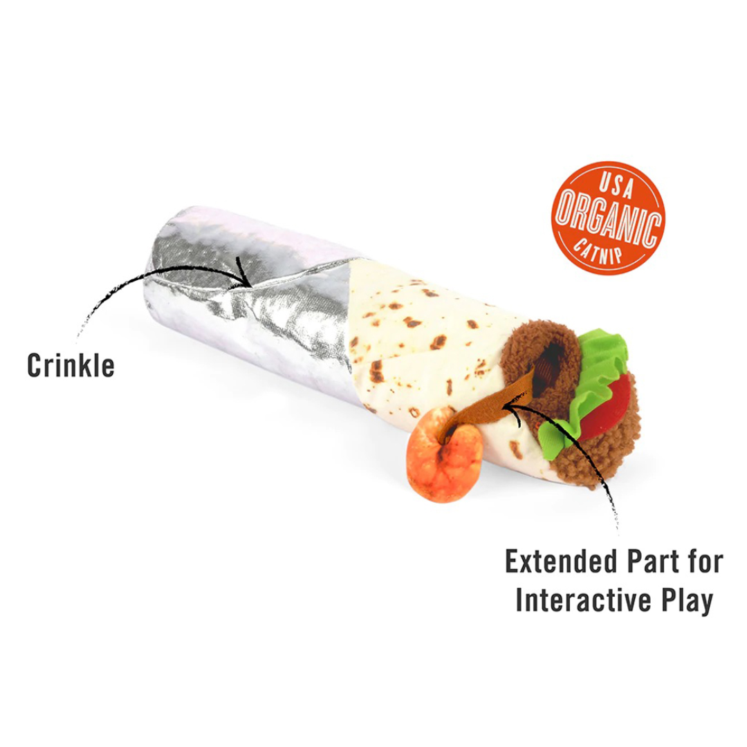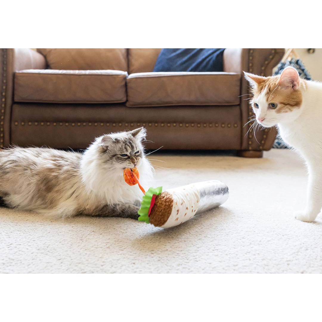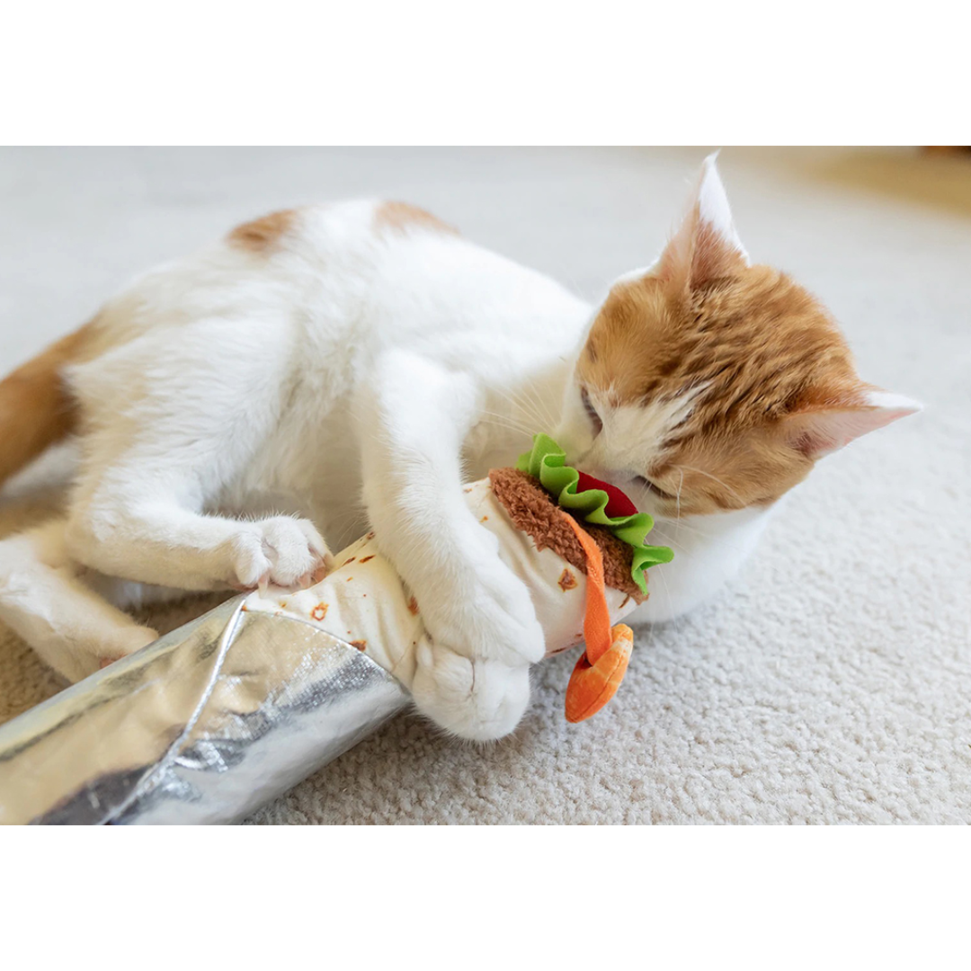 Get them a purrito of their own! It looks like a foil-wrapped burrito, but it's a cat kicker with spicy attitude that includes organic catnip sewn in, and the 'foil' is actually a crinkly material to keep cats interested, excited, and engaged.