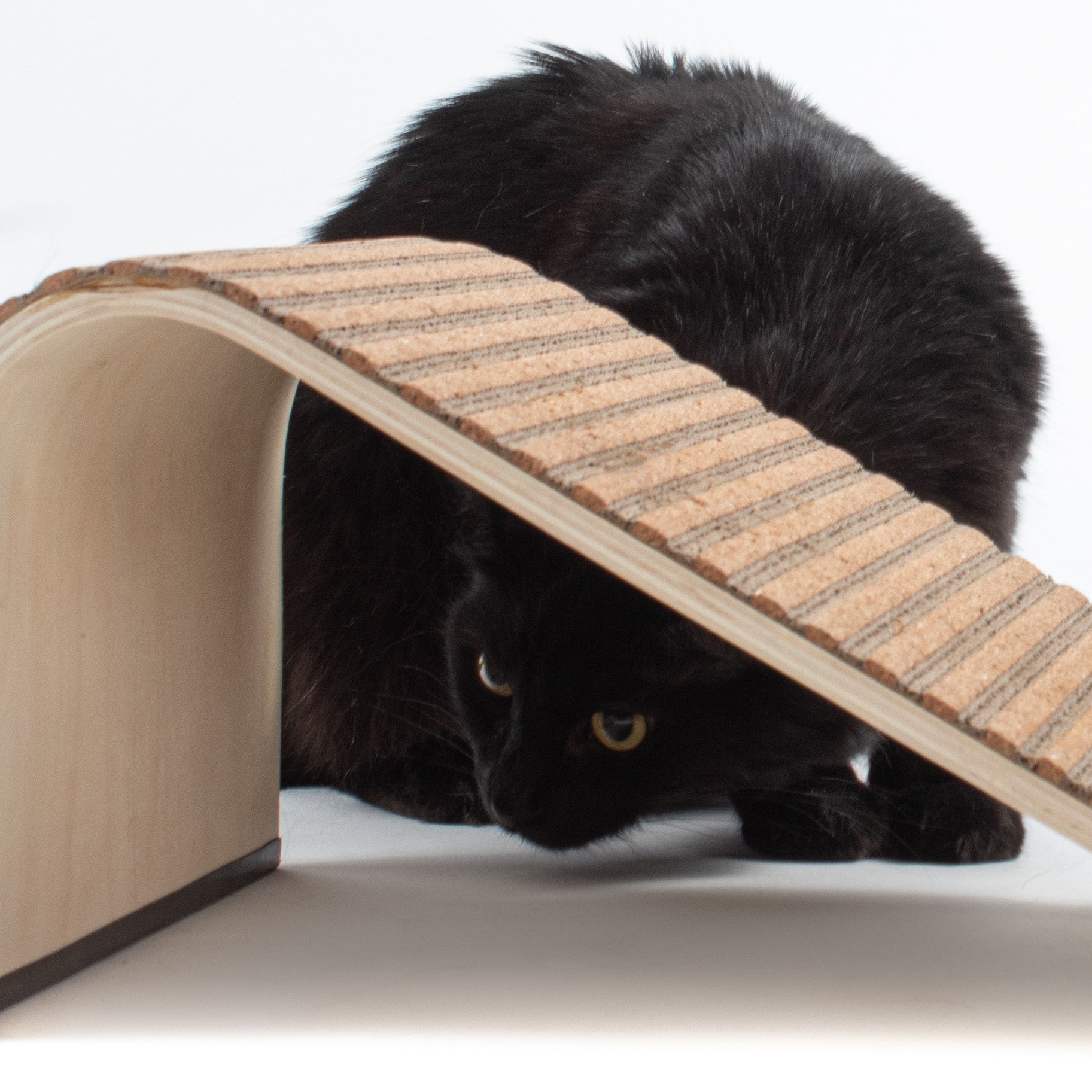 Scratchify! Incline Scratcher is perfect for cats who love vertical, horizontal, or anything in between. Its angled design encourages healthy stretching, confidence-building movement, and natural nail care. Crafted from sleek, furniture-grade hardwood with a premium cork and corrugate surface, it offers a satisfying, durable scratch experience that fits beautifully into any space. More than just a scratcher, it’s a daily ritual and a design-forward solution to protect your furniture while celebrating your cat’s need to move, mark, and thrive.