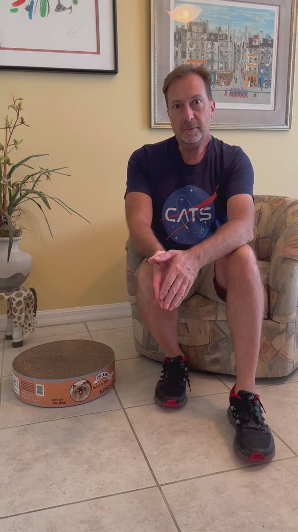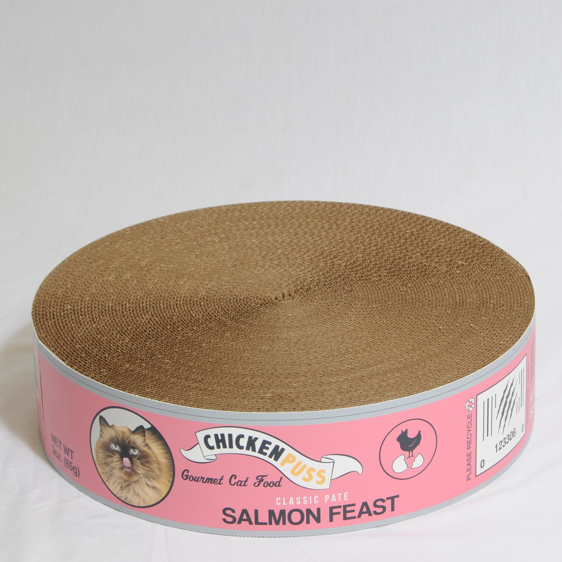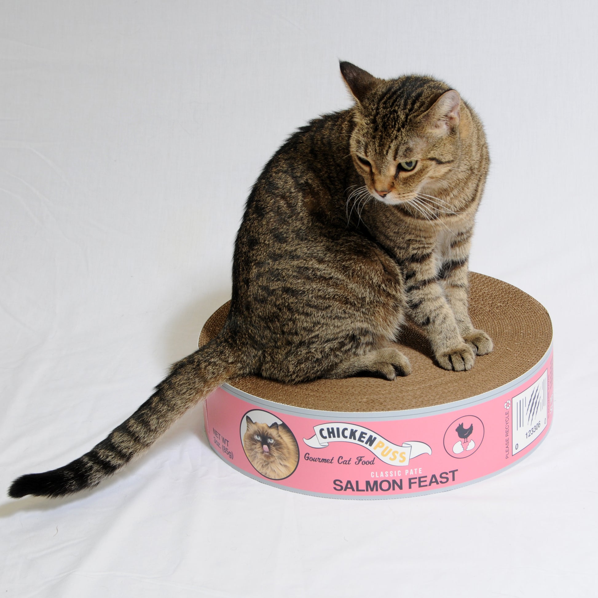 The faux brand "ChickenPuss" is a nickname Square Paws founder, Mario, had for his first cat, Slinky. Slinky crossed the rainbow bridge in 2018, and the label is Mario's way of remembering the bond he felt with his first feline companion.