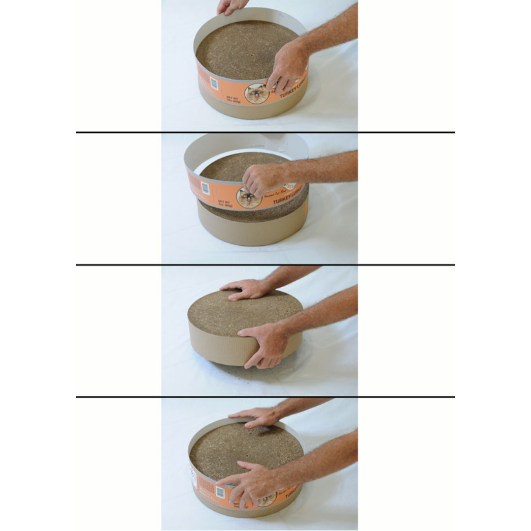 The Endless Buffet scratcher provides ample space for even large cats to stand atop it, arch their backs, and dig their claws into it. And it's great just for lounging! While 4" in height might not seem like much to us humans, it's a great podium for a kitty to feel above the rest of their world while providing plenty of room to drape themselves across it or curl up and nap. The thicker corrugated makes for a long-lasting scratcher and your cats will love digging into it because of its density!