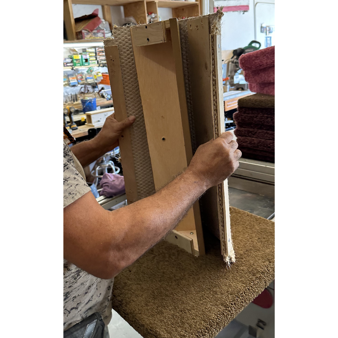 The base is made of solid plywood. The center post is comprised of solid plywood with a woven sisal wrap, which makes this an ideal scratching destination for your kitty! A back plywood panel is easily removable and the sisal scratch pad can be turned upside down and replaced when fully worn.