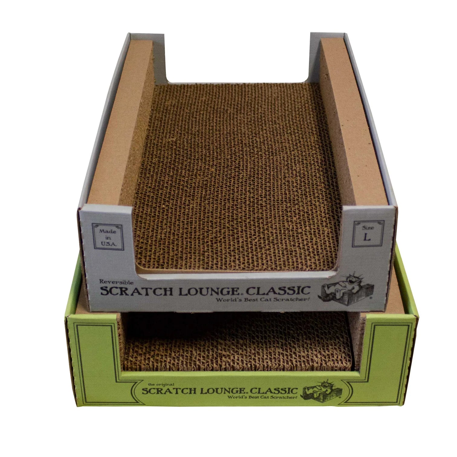 Cats go nuts for the Original Scratch Lounge Classic! Its truly astounding how much cats love the Scratch Lounge, from the moment it arrives, cats scratch, sleep, lounge... they just want to stay in the overwhelmingly satisfying Scratch Lounge.