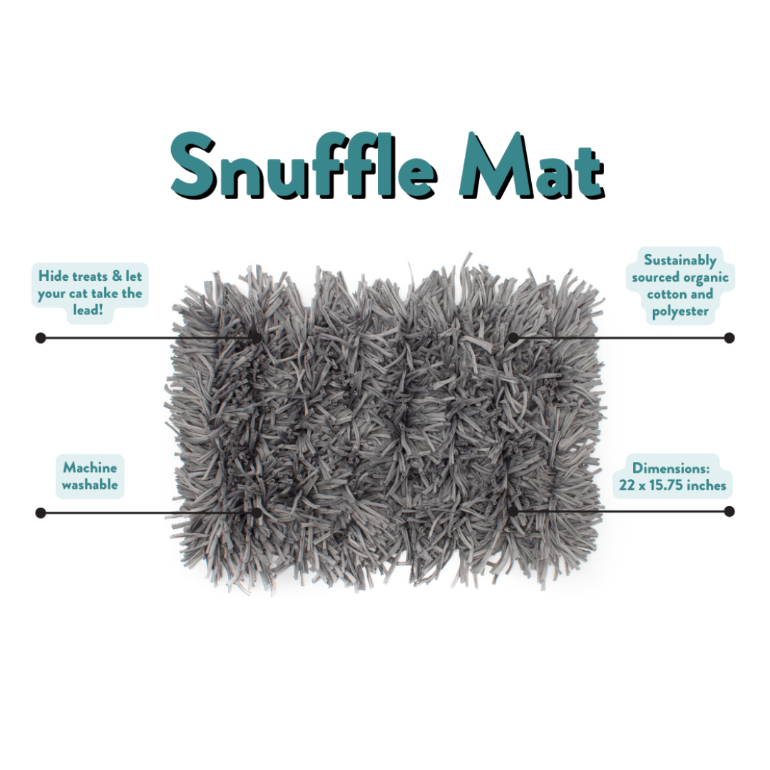 Included in this bundle is a Snuffle Mat which is sustainably sourced from a combination of virgin and upcycled materials. It is machine washable and easy to clean. Combine this enrichment tool with irresistable treats and your cats will get to work seeking out delicious morsels!